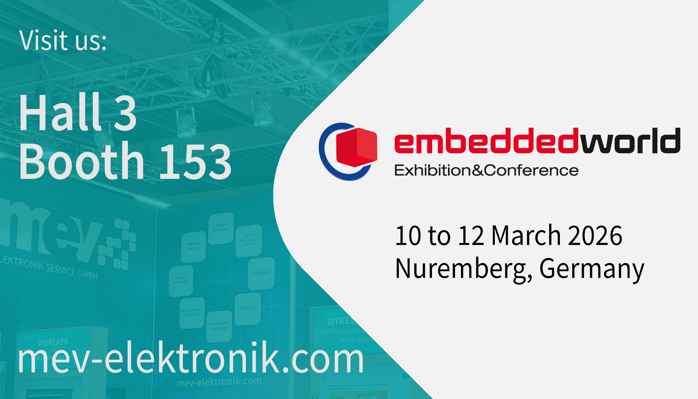 The IO-Link Device Transceiver ND1160 will be presented at Embedded World show in Nuremberg (10 MAR to 12 MAR 2026) at the MEV booth 153 in hall 3. You are welcome to book an appointment in advance.